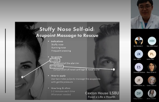KY.COM开云体育(中国)科技公司教育志愿者、2021级中医内科学硕士研究生杨紫都应邀为伦敦南岸大学师生作“减肥与中医养生” 线上专题讲座,分享了不同体质人群使用中医特色疗法进行体重控制与养生的方法。