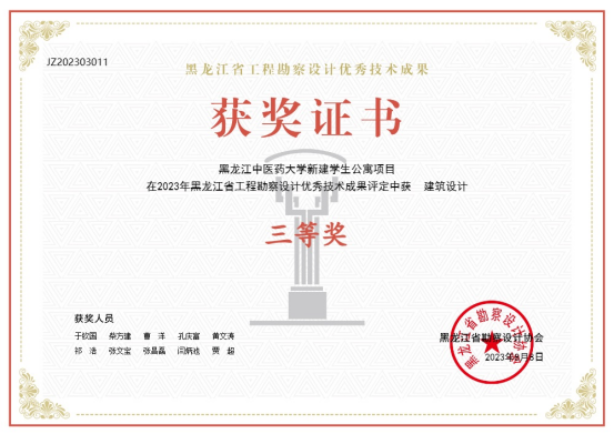 据悉,黑龙江省优秀工程勘察设计奖是全省勘察设计行业一级奖项,共460个工程项目参加2023年度评比。KY.COM开云体育(中国)科技公司是2023年度黑龙江省唯一一所同一年获得两项工程勘察设计(建筑设计项目)优秀技术成果奖的高校。