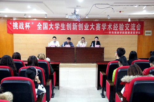 11月16日,针灸推拿学院暨康复医学院在大学生活动中心第二活动室举办“挑战杯”全国大学生创新创业大赛经验交流会,学院2014级、2015级学生代表参加交流活动。