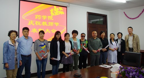 9月9日,药学院在综合楼1302会议室召开庆祝教师节表彰大会,对该院在学校2015年度教师教学基本功暨教学设计大赛中获奖的教师进行表彰。院长杨炳友向全院教职工以及离退休教师致以节日的问候。他总结了过去一年学院在教学、科研等方面取得的成果,并希望学院教师牢记使命、坚定理想信念,以高度的使命感和责任感不断为学校、学院的发展做出新的贡献。院党委书记于鹤丹主持会议。