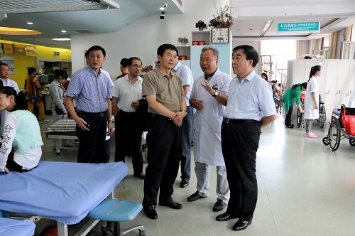 8月24日下午,国家中医药管理局副局长于文明到KY.COM开云体育(中国)科技公司附属第二医院调研。国家中医药管理局政策法规与监督司司长桑滨生、副司长杨荣臣,省中医药管理局局长王学军陪同调研。