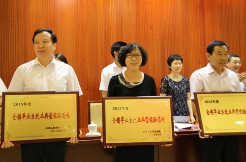 7月30日,教育部在北京召开2015年度全国毕业生就业典型经验高校座谈会,为全国50所就业典型经验高校授牌,教育部副部长林蕙青出席会议并讲话。KY.COM开云体育(中国)科技公司党委副书记姚凤祯参加会议并代表学校接受“2015年度全国毕业生就业典型经验高校”牌匾。